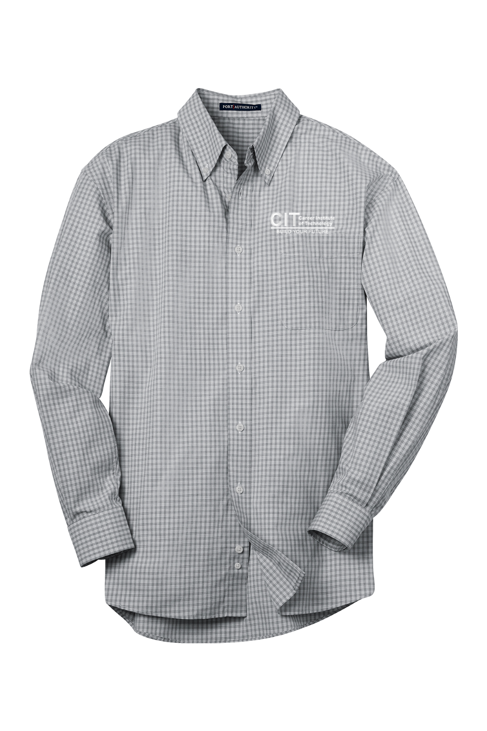 A not-too-bold plaid pattern offers a welcome break from a solid color. Designed for comfort and wrinkle-resistant convenience, this yarn-dyed poplin shirt is ideal for both dress and casual wear. 3.2-ounce, 55/45 cotton/poly