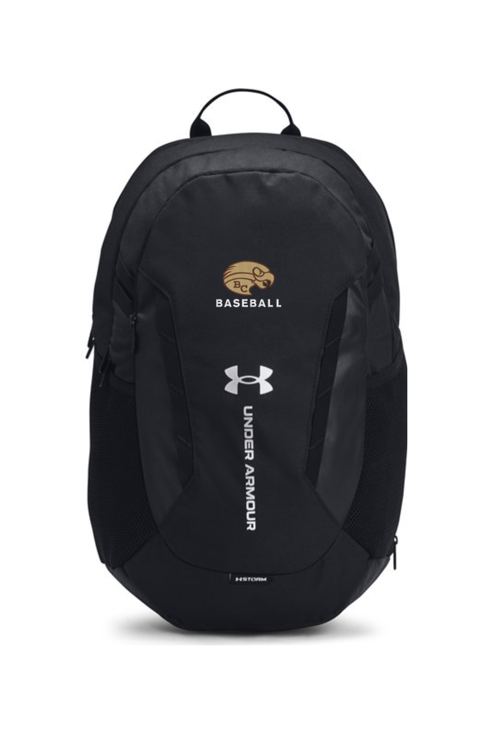 93% polyester, 7% nylon Storm Technology delivers an element-battling, highly water-resistant and stain-resistant finish EVELED strap system guides you to assure straps are adjusted evenly for balanced weight distribution Soft-lined laptop sleeve - holds up to 16" laptop Fully expandable main compartment to fit all your gear and secondary compartment works as a shoe/laundry pocket Secure zip front pockets for essential item storage Side water bottle pocket that fits 32oz bottle Adjustable, removable UA strap clip on shoulder to prevent duffle bag from falling off when carrying both Molle webbing for additional attachment points Deco Eligible